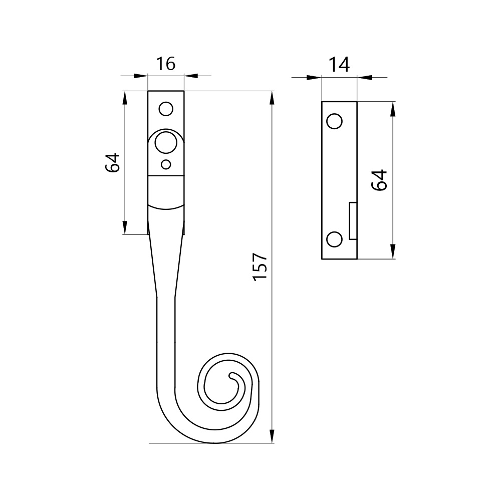Overall Length: 157mm Handle Length: 140mm Fixing Plate Size: 64mm x 16mm x 5mm Keep Projection: 27mm