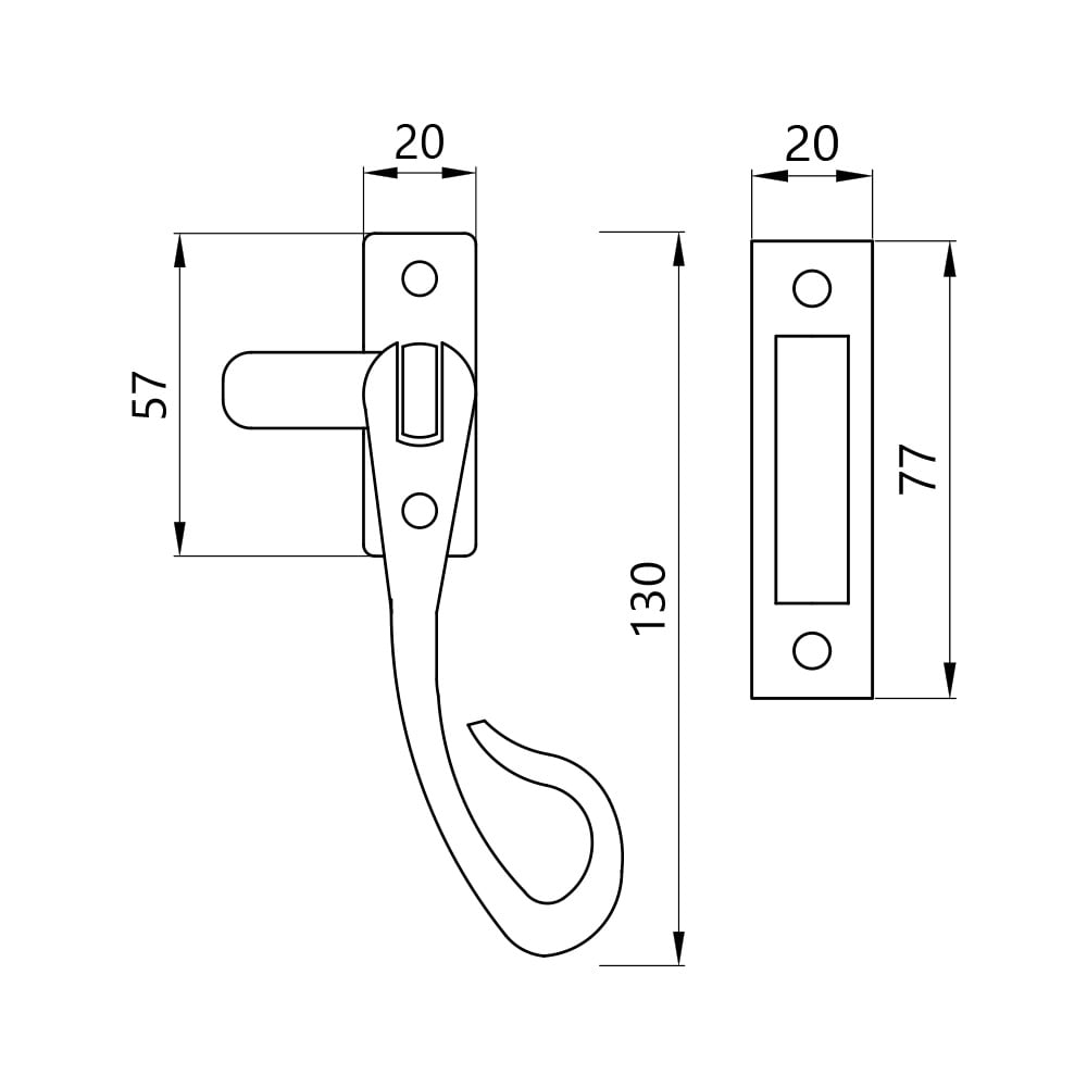 The Shepherd's Crook Fastener is forged from steel, is reversible (not handed) and can be fitted to either the left or the right side of the window. It is also suitable for use on windows that have a draft seal.