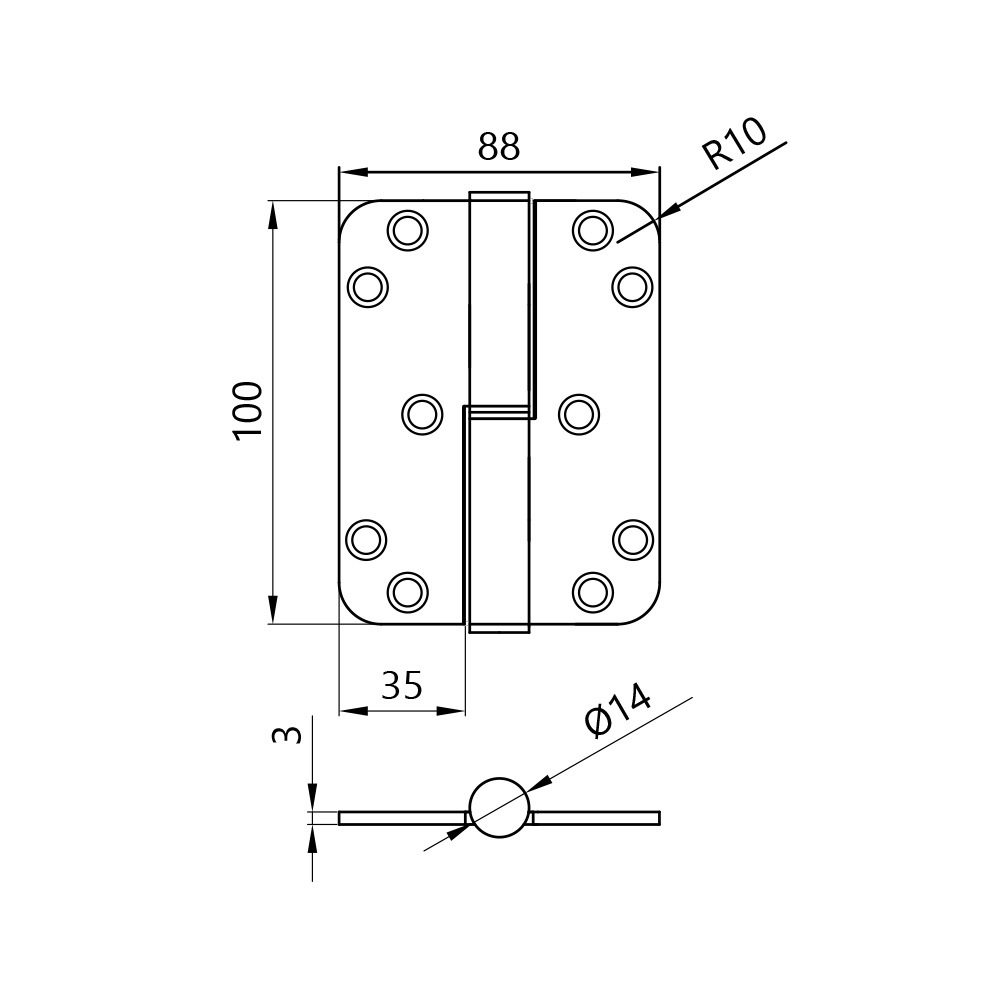 Royde & Tucker Lift-Off Hinge 100 x 88 x 3.0mm