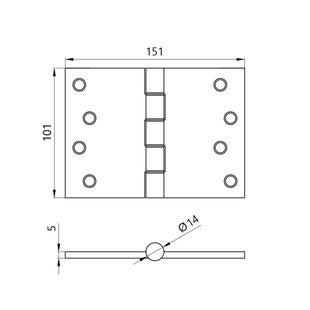 4" x 6" (101 x 151mm) Solid Brass Double Phosphor Bronze Washered Projection Hinge (pair)