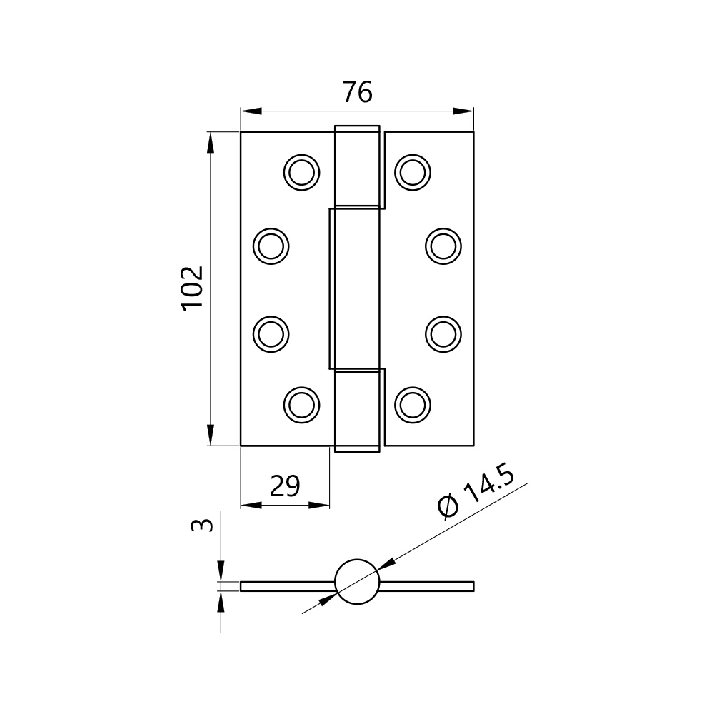 Concealed Bearing Hinge 102 x 76 x 3.0mm 201 Grade Stainless Steel