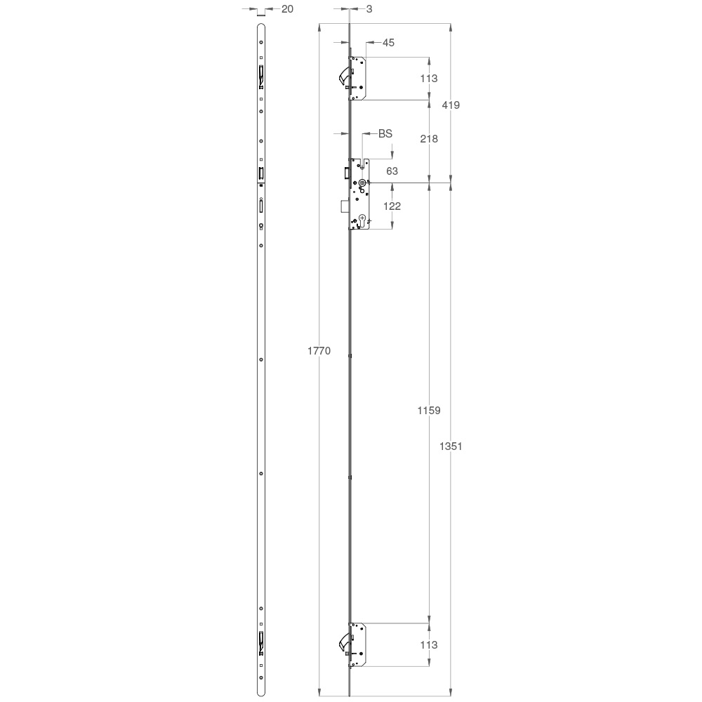 AV2 Heritage Automatic Locking Single Door Multi Point Lock - Hook Lock | Radius End