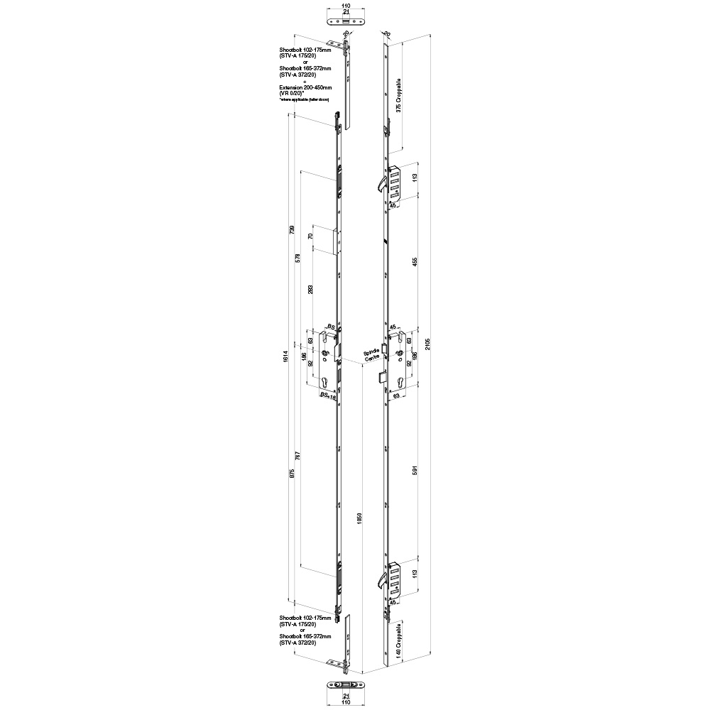 This lock has cams on top and bottom to accept shootbolts (sold seperately) and keep cutouts to fit the bolts from the master door lock (sold seperately). The FGTE slave door lock has a central lever-operated gearbox which shoots the bolts top/bottom.