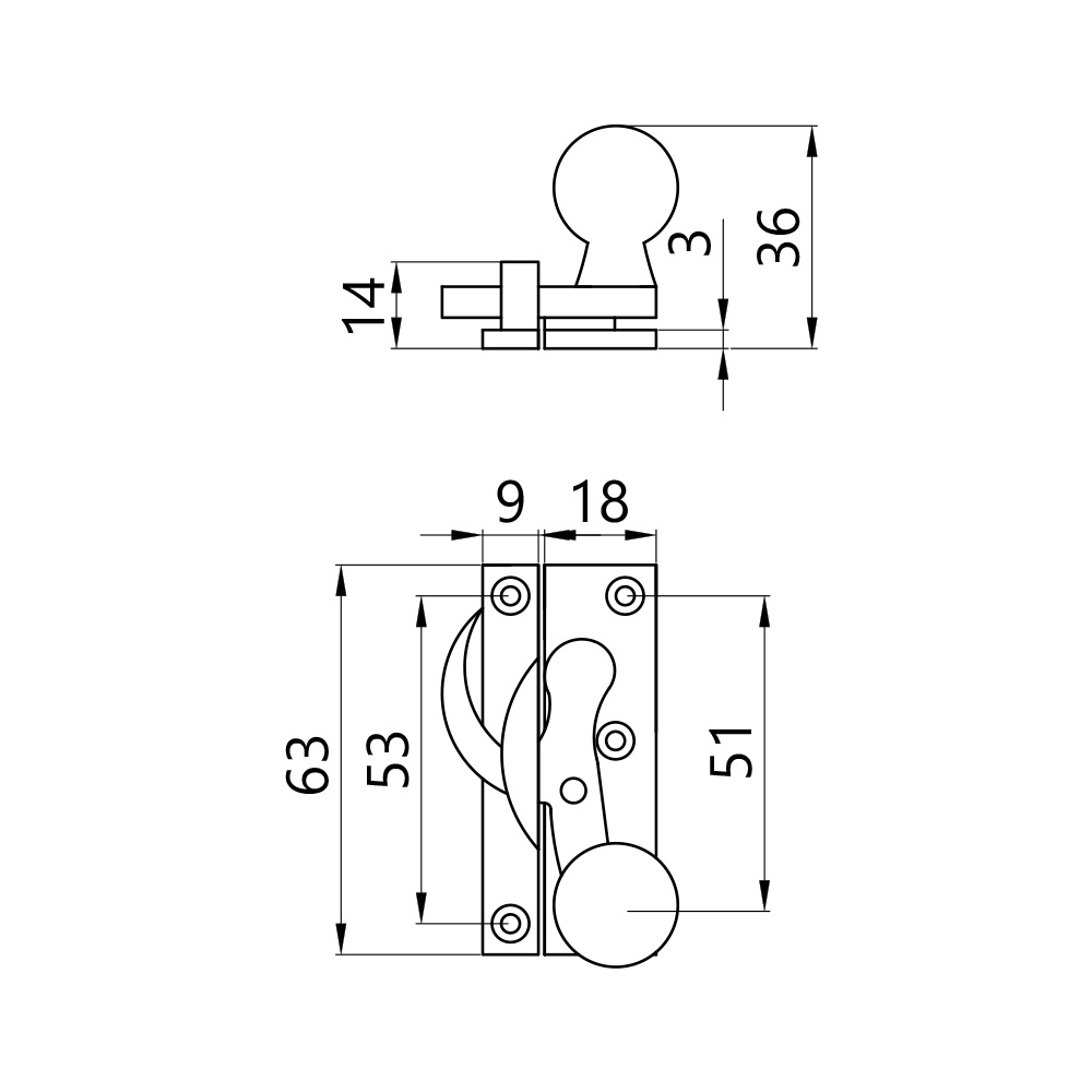 A narrow profile locking claw sash window fastener with ball shaped finial. To lock or unlock, simply engage/disengage the claw with the keep. Successfully tested to PAS24:2022.