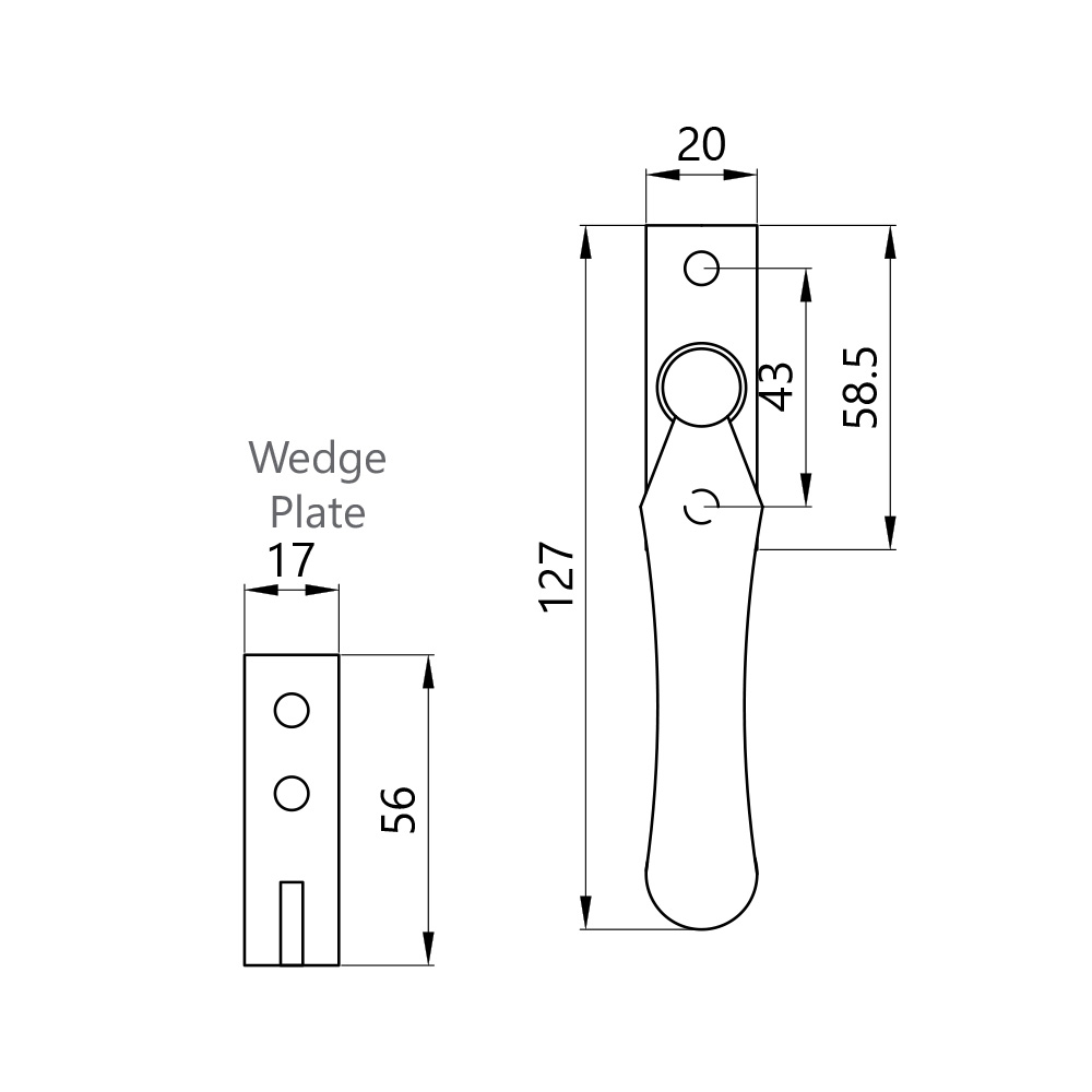 Spoon end wedge locking window fastener for use on standard casement windows.
