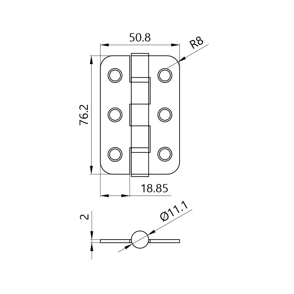 Radius Corner Eclipse Ball Bearing Hinge 76 x 51 x 2.0mm 201 Grade Stainless Steel